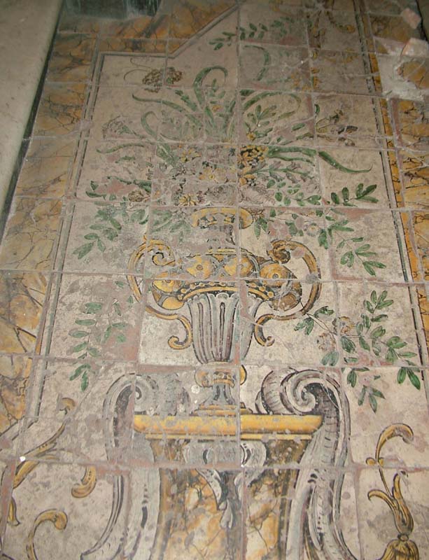 pavimento con motivi floreali e fogliacei