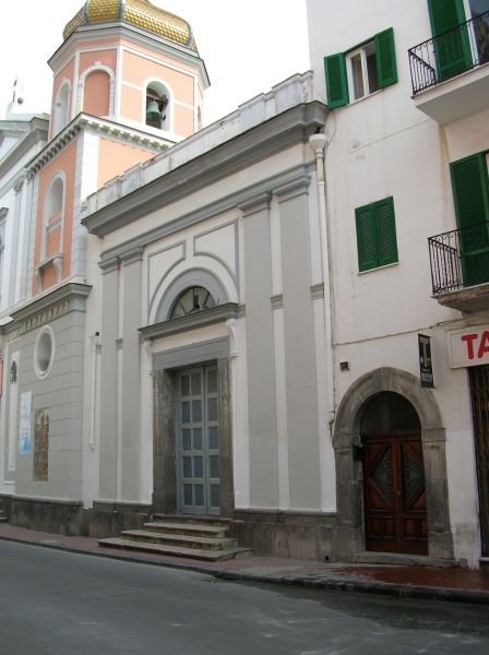 Following the expansion that transformed the small chapel built by the sailors in the fourteenth century S. Maria di Loreto church, to allow to continue their devotions, was built in 1585 next to the church a chapel dedicated to the Assumption. In 1772 it was enlarged and enriched with fine stucco work performed by the Neapolitans, Nicola Moschetti e Tommaso Bruccino. It has a single nave, with the monumental polychrome marble altar and the choir beautiful inlaid and decorated in gold leaf. In 1831 it became a Archconfraternity .. Architecturally it follows the baroque style, the ceiling is barrel lunette decorated with stucco cornices and light elliptical. On either side of the oratory, there are wooden seats with three shelves, with small pilasters and balustrades, turned with great simplicity. On the altar stands the great altar-piece, Gian Andrea D'Aloisio (XVIII); eight paintings on the walls in the shape of the medallion, Severino Galante (1789), with episodes from the life of the Virgin, S. Joseph and St. Vitus, and two paintings by Gaetano Martini (1811) with the figures of S. John Joseph of the Cross and St. Antonio of Padua.Info