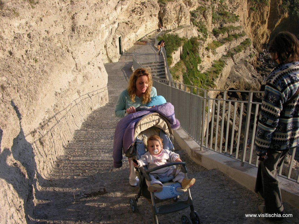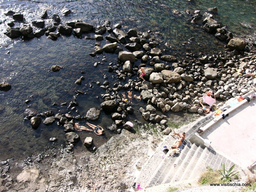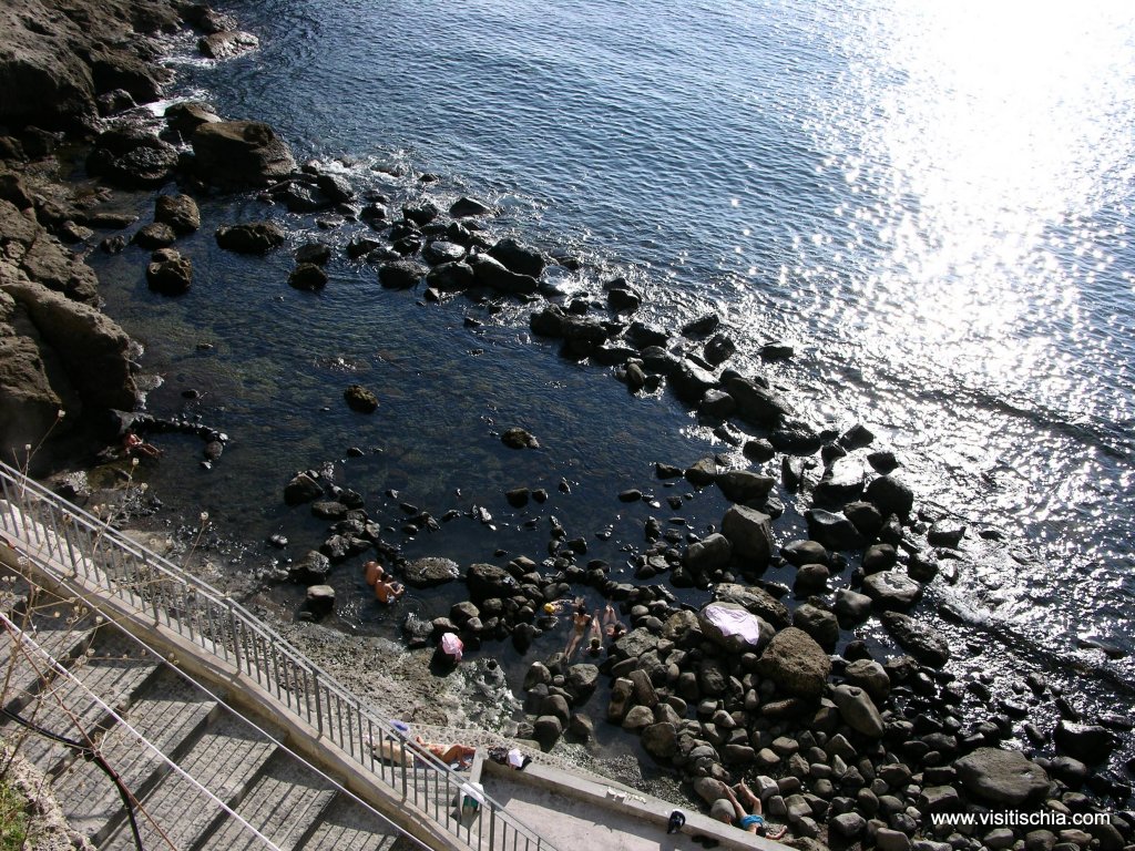 Sorgeto is an inlet with pebbles and thermal springs. Be careful not to scald yourself on the water line! This beach is accessible from the centre of Panza via a street that is approximately 1 km long, on foot or by car. From Sant’Angelo one can reach the beach with the convenient taxi boat. Sorgeto is a cove, the location of a true, outdoor thermal park. Boiling fountains and minerals, saunas and therapeutic vapors, this is what Mother Nature wanted to give the island of Ischia in remote times and today it is available for free for all those who are looking for a place to reinvigorate themselves from the daily stress and hardships. It is accessible both by sea and on foot via a steep ramp of stairs that leave from the village of Panza. It is a true relief to let oneself go to that mixture of warm-cold, sweet salt water and to taste one of the most marvelous sunsets that one could ever image. Be careful, though! Its rocks and stones are at times boiling hot! In one of the little basins from which the waters bubble, the islanders cook eggs, potatoes and seafood, a custom that most certainly is repeated century by century as is evidenced by archeological finds discovered in the zone. The most fascinating characteristic of Sorgeto is bathing at night on the warm under the stars. One can relax as one spends unforgettable moments here. The mild temperatures are present here even in the winter and therefore allow for one to tan and bathe even in the coldest weather!Info