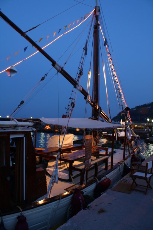 L'imbarcazione è in legno doppio fasciame in quercia di 17 metri strutturata con vela latina. Motorizzata con un motore AIFO di 210 cv, sviluppando una velocità di crociera 9 nodi. A bordo vi accoglierà il capitano Oreste Marsili insieme al suo equipaggio per: