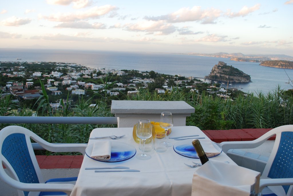 Il pesce fresco è protagonista della cucina, con specialità marinare rigorosamente scelte in base al pescato locale, garanzia di qualità e freschezza dei piatti proposti. Il tutto viene prepaparato nella migliore tradizione mediterranea in modo attento accurato ed anche rivisitato, con una scrupolosa scelta anche sui prodotti primari da usare negli abbinamenti. Oltre al pesce, una selezione delle migliori carni, cotte sulla brace del barbecue allestito a vista all'esterno ed il famoso coniglio di fosso ischitano, cotto nel classico tegame in creta, una tradizione che conserva tutti i sapori che la nostra amata isola ci offre. Un'ottima pizza cotta nel tradizionale forno a legna ed una selezionata cantina di vini nazionali.