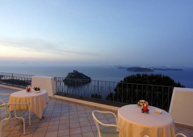 Il ristorante è situato sulle verdi colline di Campagnano, un incantevole paese, immerso nei vigneti, a pochi minuti dal centro turistico del comune di Ischia Porto.Dalla sua straordinaria posizione panoramica, il ristorante offre una vista mozzafiato sulla Baia di Cartaromana, il Castello Aragonese, l’isola di Capri e tutto il Golfo di Napoli fino al basso Lazio. La luminosa, elegante sala offre un’atmosfera rilassante e piacevole.